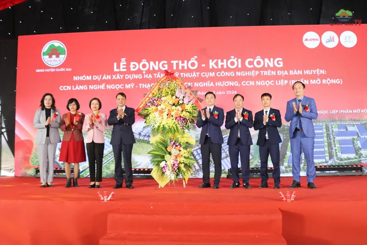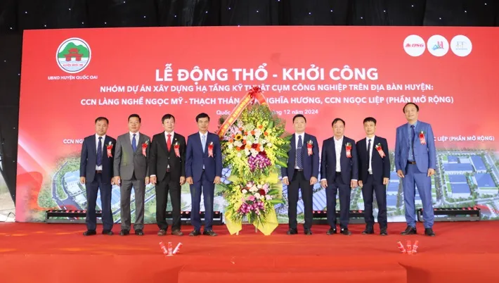 Báo cáo tại Lễ khởi công, Chủ tịch UBND huyện Quốc Oai Nguyễn Trường Sơn cho biết, trên địa bàn huyện hiện có 17 làng nghề với gần 3.490 cơ sở, hộ sản xuất, kinh doanh may mặc, mộc, cơ khí, chế biến thực phẩm… Trên cơ sở xem xét nhu cầu, định hướng phát triển ngành công nghiệp của các địa phương, các quy hoạch đã được phê duyệt, từng bước đưa các cơ sở sản xuất trong làng nghề ra khu sản xuất tập trung, nhằm giảm ô nhiễm môi trường trong khu dân cư, phát triển sản xuất bền vững, UBND huyện Quốc Oai đã hoàn thiện hồ sơ, thủ tục theo đúng quy định trình UBND Thành phố xem xét, quyết định thành lập các cụm công nghiệp: Ngọc Mỹ - Thạch Thán, Nghĩa Hương, Ngọc Liệp (phần mở rộng).