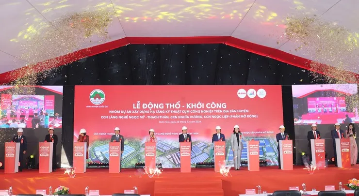 Huyện Quốc Oai đồng loạt khởi công 3 cụm công nghiệp